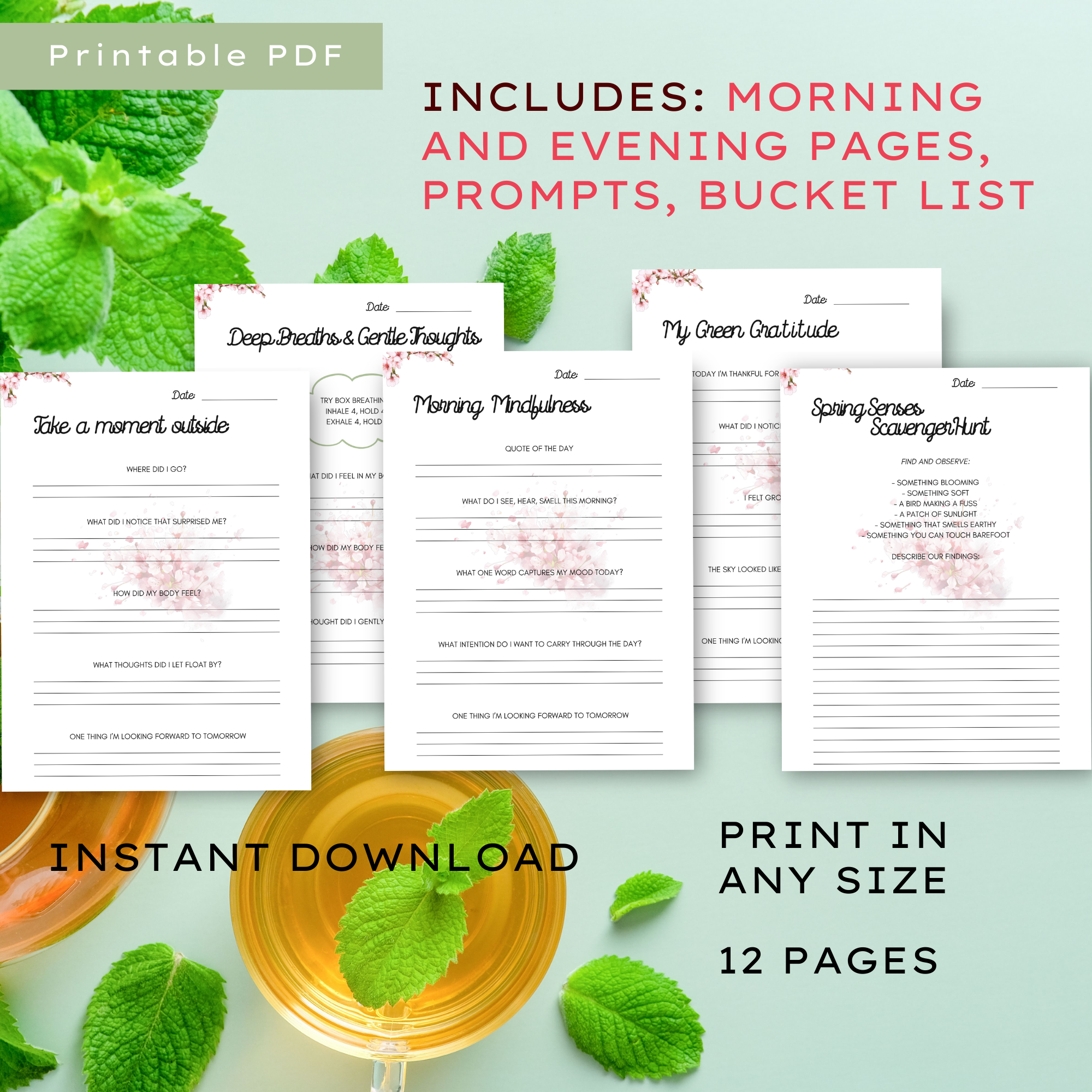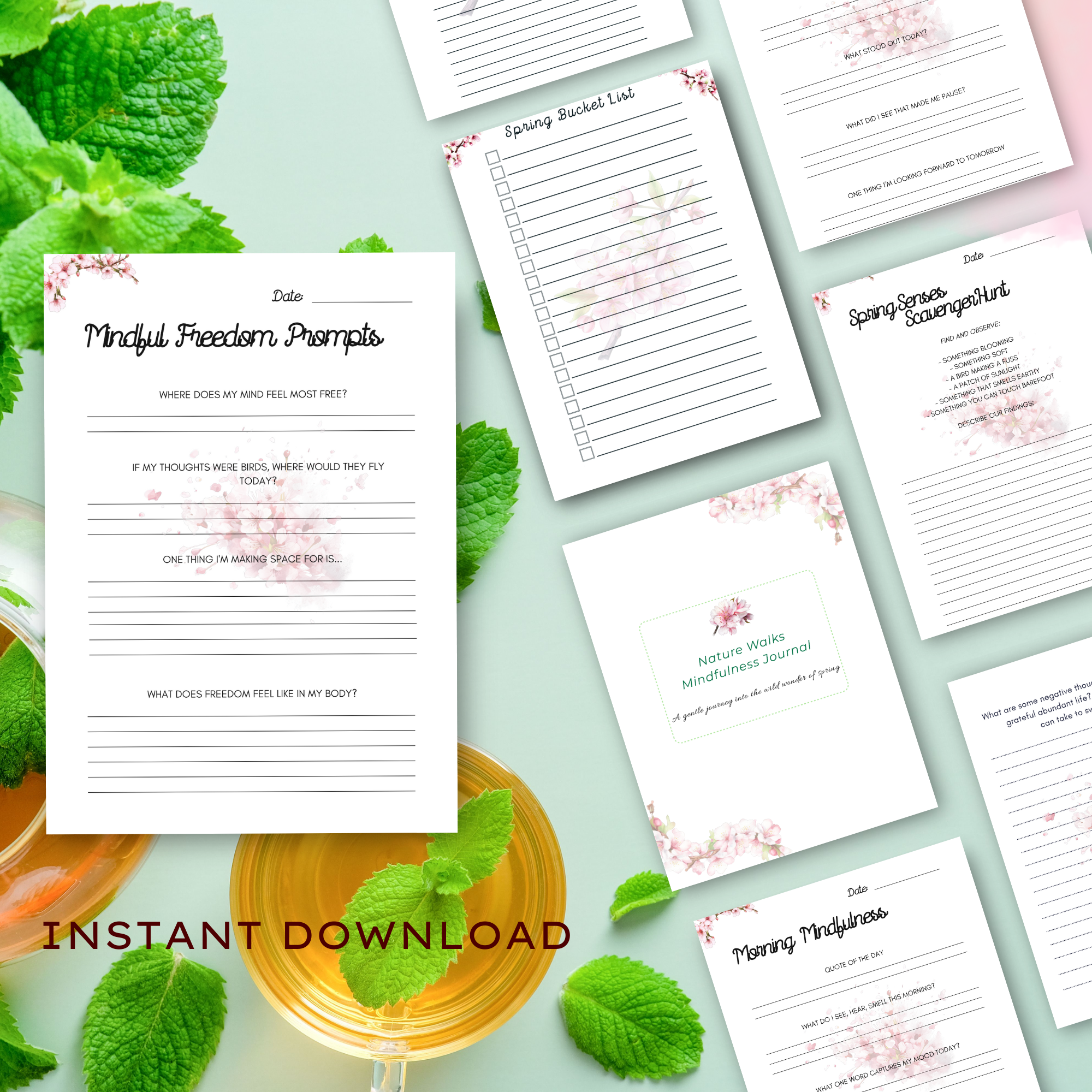 This Mindfulness & Nature Journal is a 12-page printable self-care journal designed to help you find calm, boost mindfulness, and rediscover your everyday freedom — all wrapped in soft springtime vibes.
