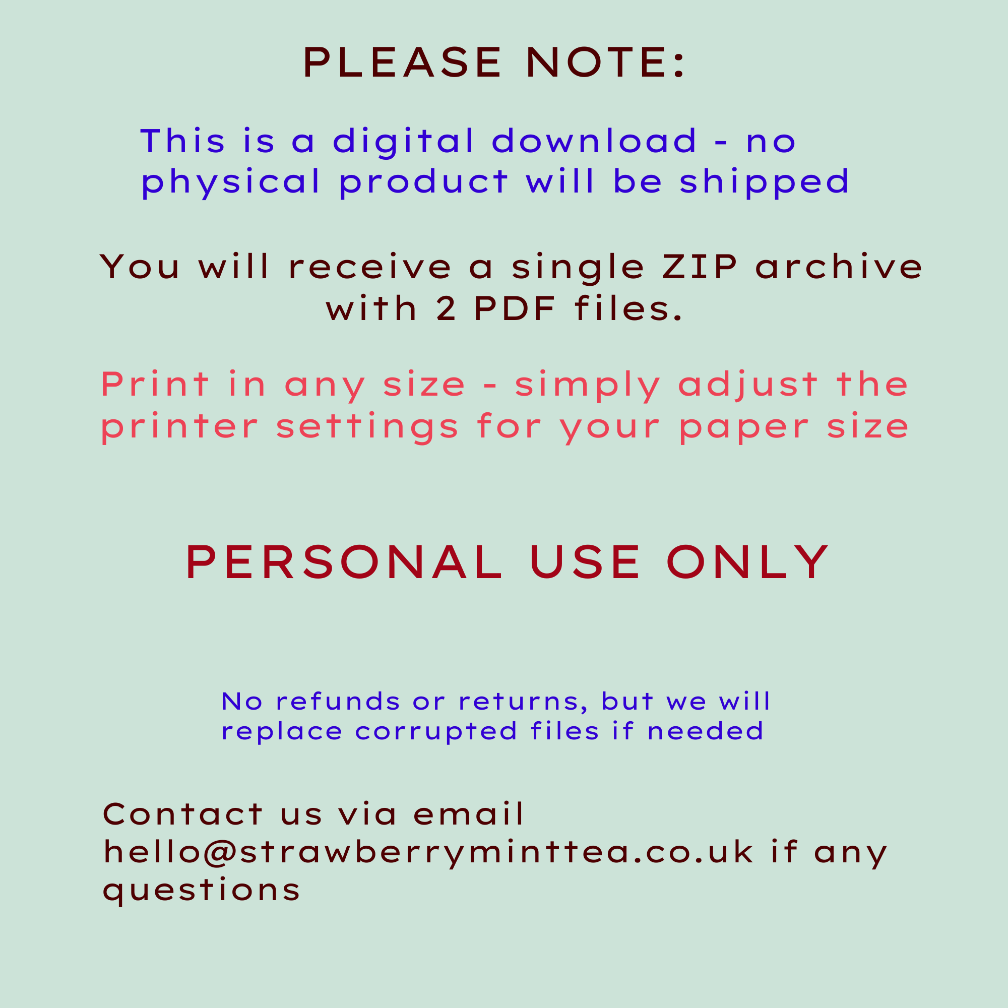 Can be printed in A5 or any other size – simply adjust your printer settings.