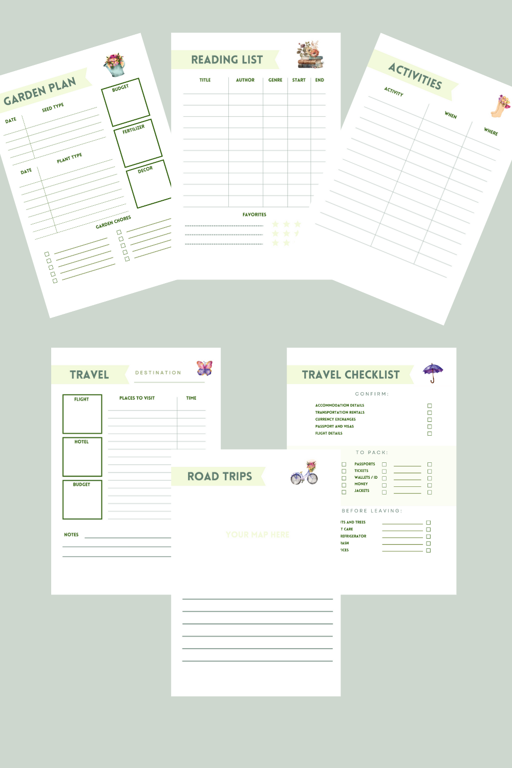 Simple Spring Activities Planner and Tracker, Spring Bucket List, Spring Meals Planner, Spring Events, Road Trip, Garden Plan