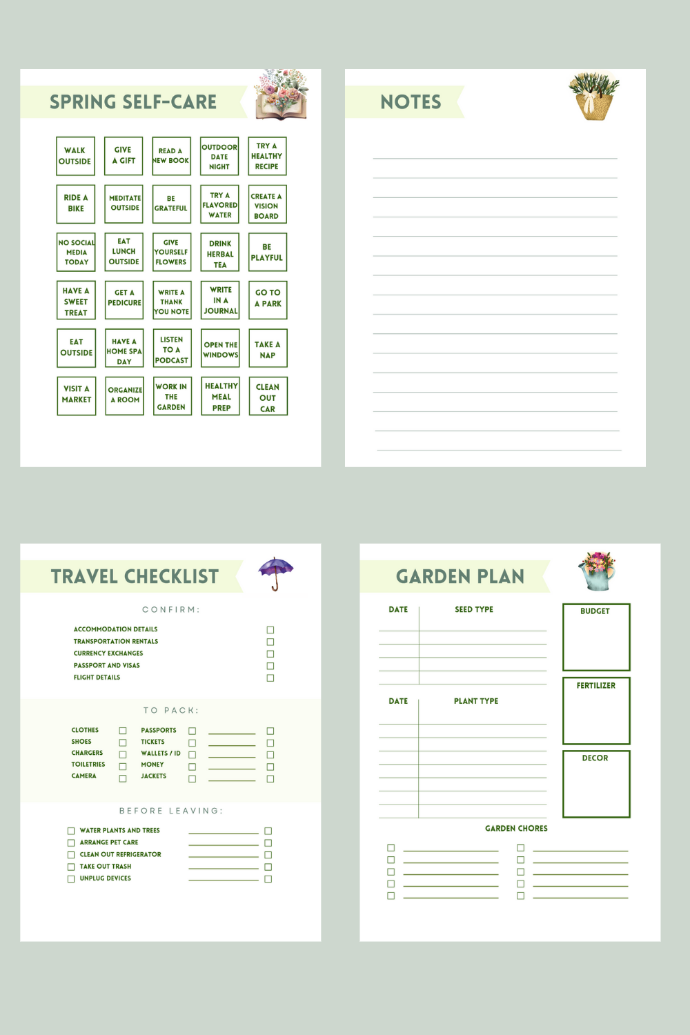 Simple Spring Activities Planner, 17 pages  – A4 and US Letter sizes included, can be printed in A5 or any other size