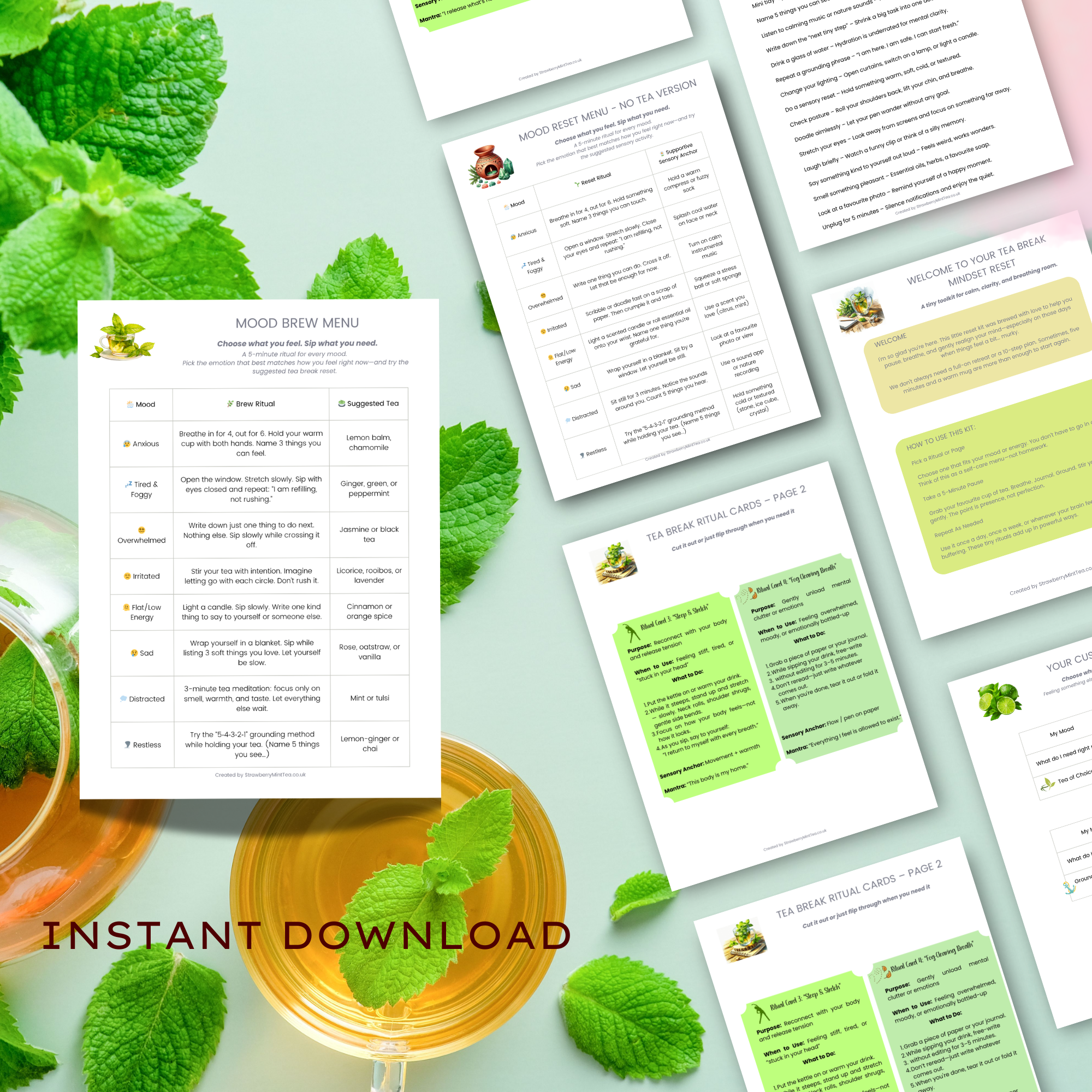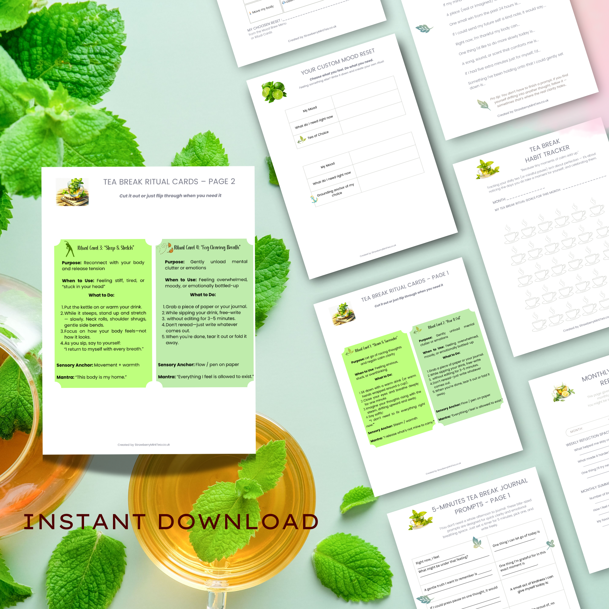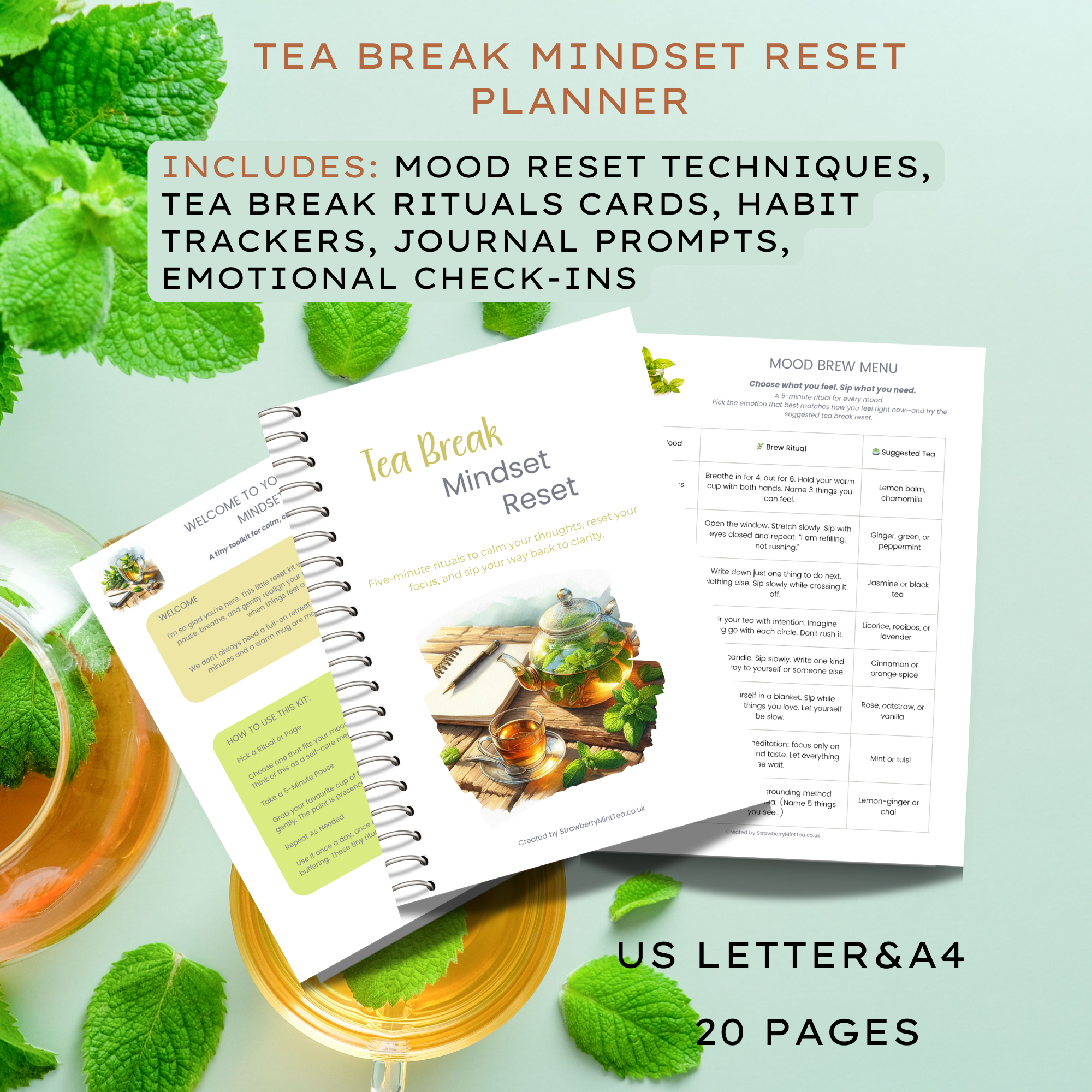 Tea Break Mindset Reset Guide – gentle mindset shifts, reflection prompts, habit trackers